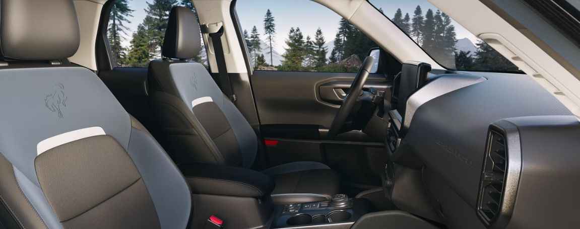Technology is another highlight inside the Ford Bronco Sport cabin. The vehicle includes a large 13.2-inch center touchscreen display that supports wireless Apple CarPlay and Android Auto integration. This allows drivers to connect their smartphones and access navigation, music, messages, and apps directly through the screen. The Ford Connectivity Package also adds features such as WiFi hotspot capability, streaming services, and connected vehicle technology. Drivers can stay connected whether they are commuting through the city or exploring remote areas.