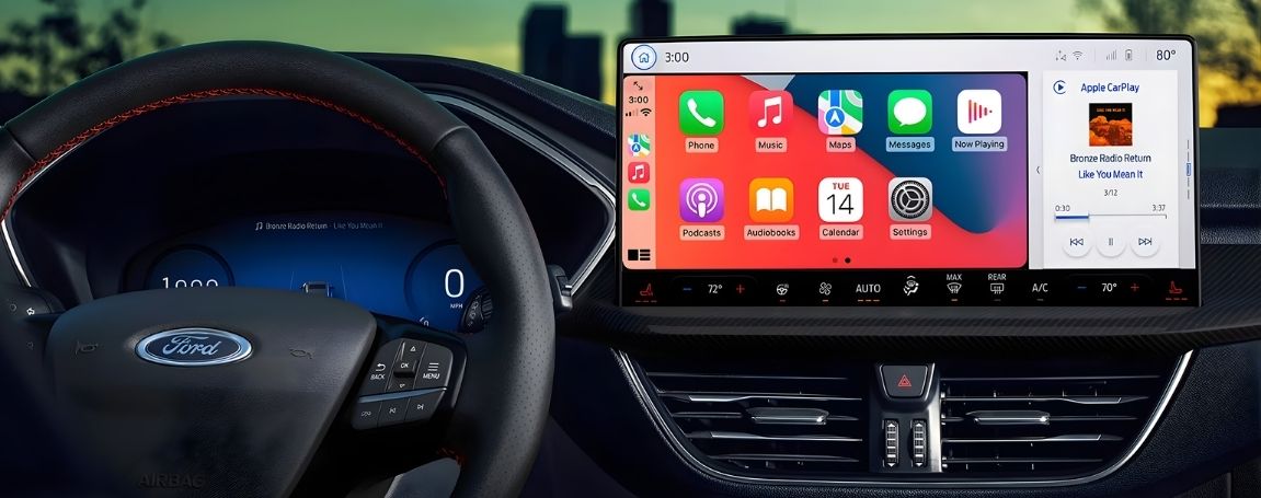 One of the most impressive features is the large 13.2-inch centre touchscreen display powered by SYNC 4 with enhanced voice recognition. This system allows drivers to control navigation, entertainment, and vehicle settings with simple voice commands or touch inputs. The screen provides a clear and responsive interface that keeps important information easy to access while driving. Drivers can quickly view maps, manage music, and adjust vehicle settings without distraction. The large display helps create a modern digital cockpit experience that feels intuitive and easy to use.
